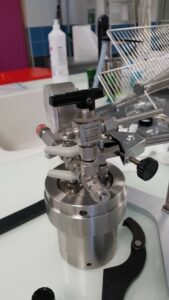 (V réacteur=300mL, Pmax=200bars, agitation mécanique et possibilité de chauffage avec manteau céramique contrôlé en T°)