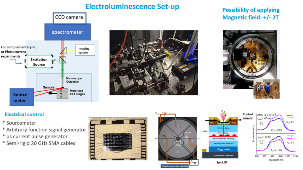 The Quantum Optoelectronics team works with innovative optical spectroscopy tools, combining spatial (sub-micronic) and temporal (pico/femto-second scale) resolution, cryogenic temperatures, and strong magnetic fields for the characterization of electronic, optical and transport properties of nanostructures based on semiconductor materials.